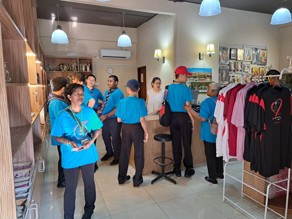 Our parish of St Michael, had the honour of welcoming visitors from the Penang Cheshire Home, Cerebral Palsy Association of Penang, Sekolah Pendidikan Khas Jalan Hutton, School for NeuroDiverse Children, Caring Rehabilitation Society of PWD Penang together with their carers and scouts from Penang Cheshire Home Scouts from 62nd George Town South, on the morning of 8th February 2026. Three buses and one van full of these guests arrived at around 8.20am in the morning, while the Sunday morning mass was ongoing. The visit was part of the group's 3-day 2-night 18th Penang Cheshire Agoonoree, a specialised scout camp for young people with disabilities or special needs. Hosts from SMC comprising 3 groups of volunteer parishioners were on hand to welcome the visitors and give them a guided tour of our parish and its facilities. There were approximately 40 OKU and 50 volunteers in total. Visitors were first led to the Parish Activity Centre to have a rest and some water, as the group had just departed from their hotel after breakfast. Current PPC Chairperson Ms Jennifer Duarte gave a brief presentation about the history and interesting aspects of our church, including the first class relic of St Padre Pio and the grave of local war heroine, Sybil Kathigasu. Goody bags were also prepared for each guest. The guests were also shown around our Religious Articles Centre, church gardens and interior of the church after the English mass ended. Fr Aloysius managed to greet our special guests after he had finished celebrating the English-language mass. The visitors then took some group photos by the porch and continued on their journey to the Ipoh railway station to catch their train to Taiping.