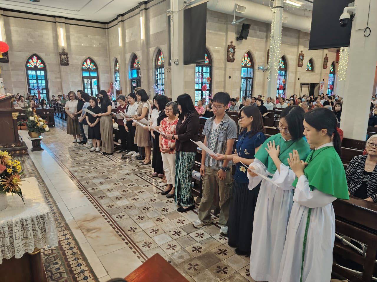 In conjunction with the Sunday of the Word of God, all serving members of SMC's lectors, commentators and scriptwriters ministries were commissioned by Monsignor Stephen Liew, after the homily in the morning English and Mandarin-language masses on 25th January 2025. Monsignor Liew explained that the Sunday of the Word of God which is commemorated every third Sunday in Ordinary Time, was instituted by Pope Francis. The first Sunday of the Word of God was celebrated on January 26th, 2020. Monsignor Liew reflected that the Word of God is something not only to be listened to but something to be acted upon and lived out. He recounted our Blessed Mother Mary's response to the Word of God she received from the angel Gabriel. He reminded that we are all called to Receive, Reflect and Respond to the Word of God that may come to us in different ways. The lectors, commentators & scriptwriters commissioned in front of the whole church congregation made their public commitment to serve faithfully and responsibly in the spirit of prayer and co-operation within the Church.