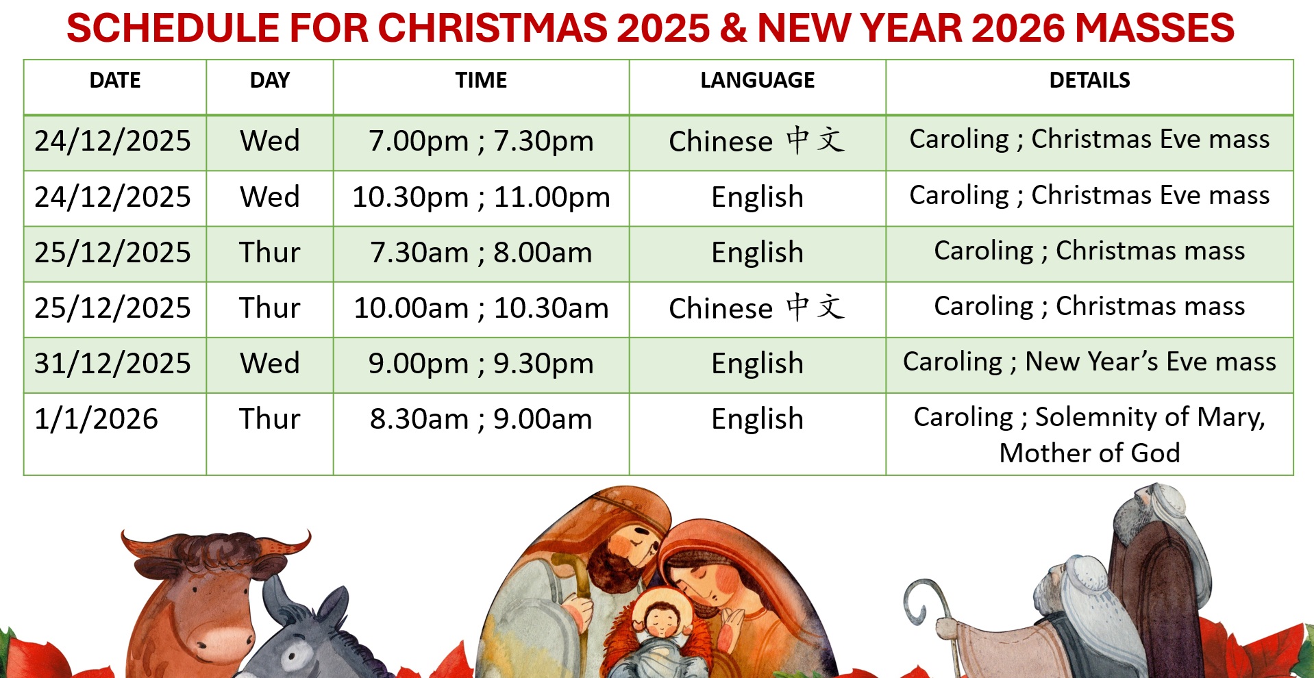 2. CHRISTMAS 2025 & NEW YEAR 2026 SCHEDULES
