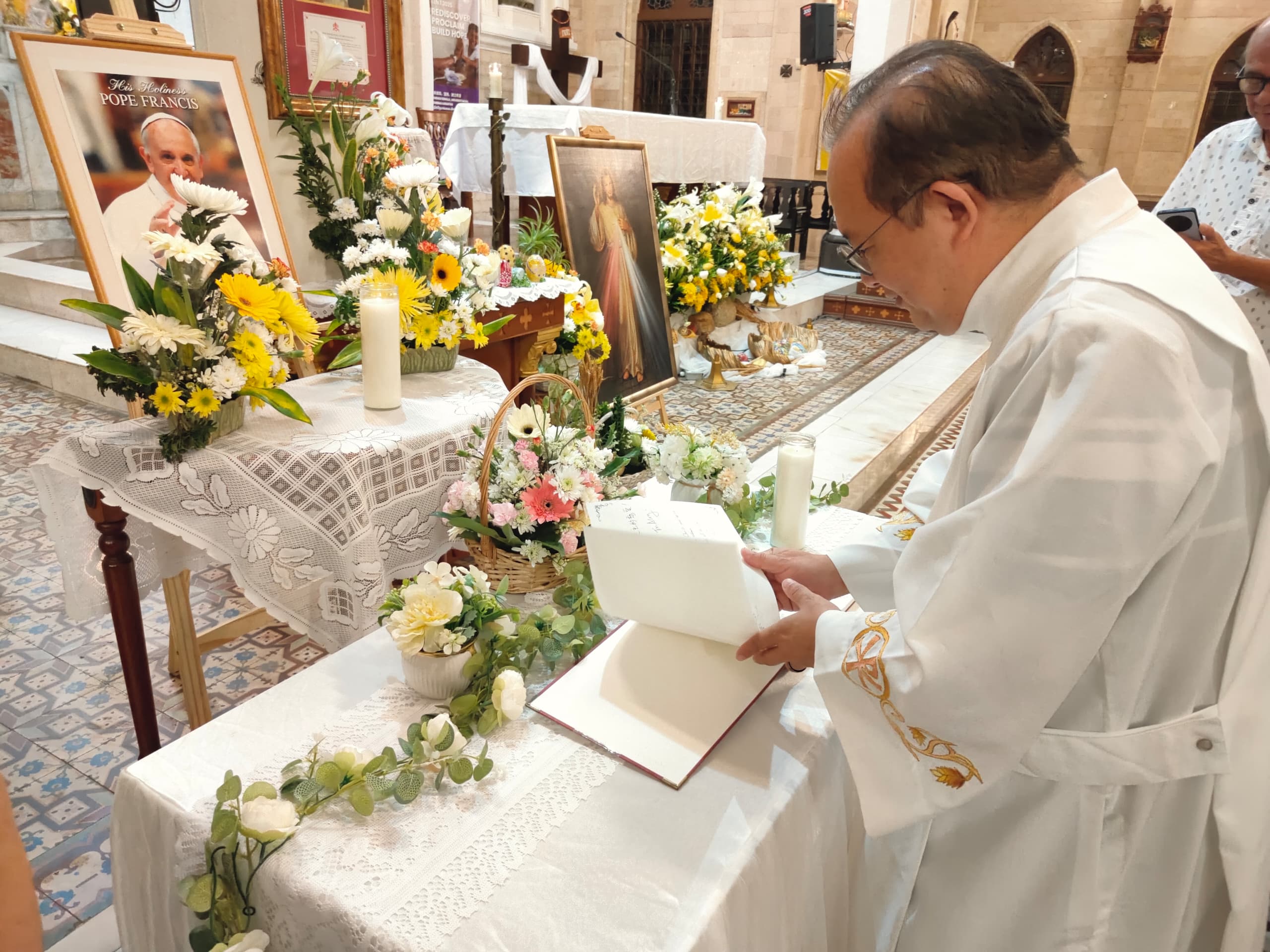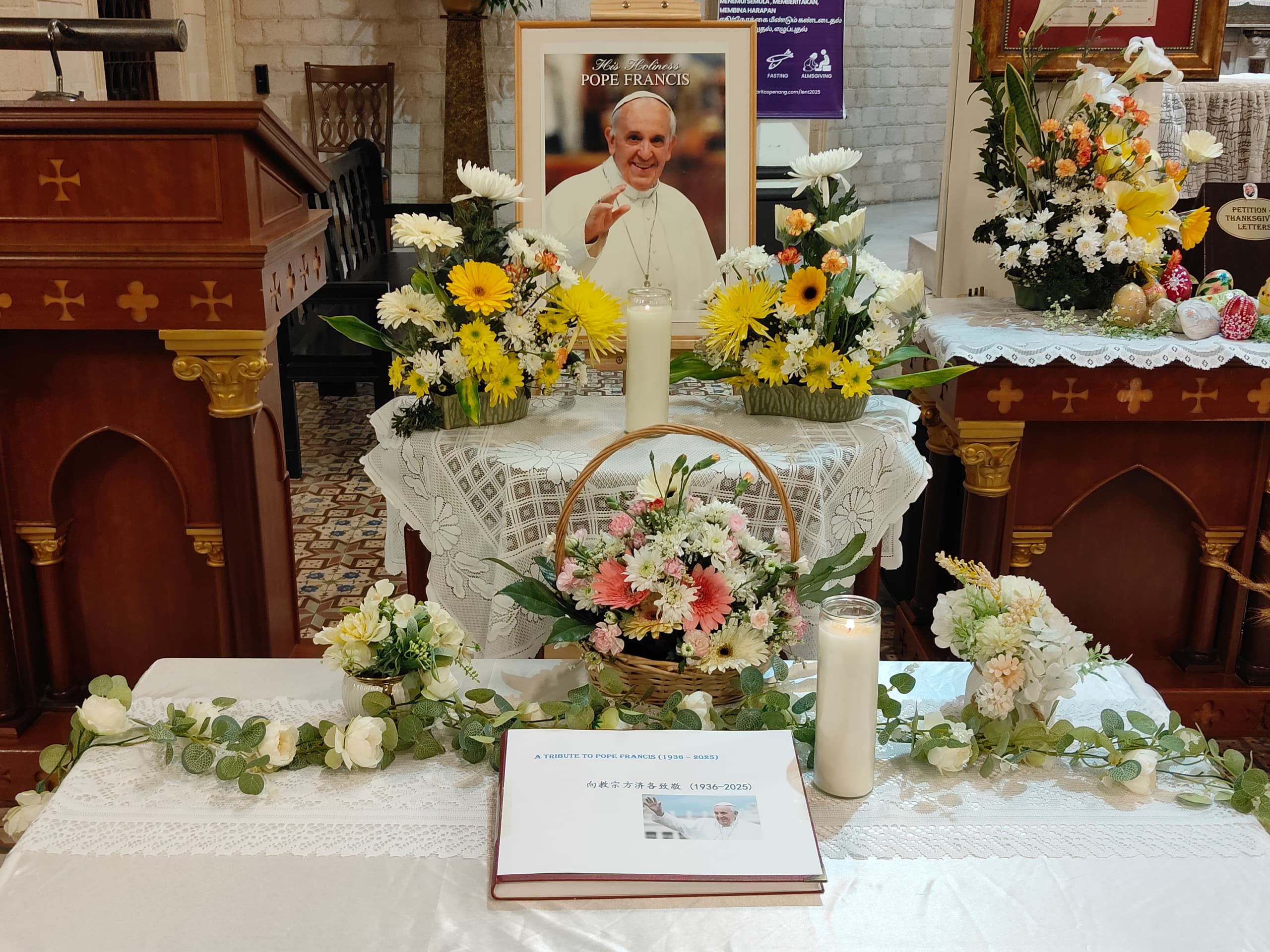 Catholics all over the world received the sad news of Pope Francis' passing on Easter Monday. The Holy Father passed away peacefully on the morning of 21st April 2025, in the aprtment where he resided in Domus Sanctae Marthae, Vatican City. SMC parish priest Fr Aloysius Tan then called upon SMC parishioners to pray for the repose of the soul of Pope Francis in the same evening of that day. Pope Francis was a man who truly embodied Christ in his life and his habits and was greatly admired by many, not only within the Catholic church. A book for parishioners to write their tributes was opened and placed in church before the prayers. This book will later be sent to the Apostolic Nuncio in Kuala Lumpur. Despite the short notice, many parishioners made their way to church in the evening to pay their respects and pray a rosary for the Holy Father. Prayers for the deceased will be held subsequently at every weekday mass culminating in a Memorial mass on Saturday (26/4/2025) at 12.00 noon. The Divine Mercy chaplet will then be prayed at 3.00 p.m. followed by the livestream (in church) of the funeral mass from Vatican City starting at 4.00p.m. The day will end with the sunset mass for Divine Mercy Sunday at 6.00p.m.