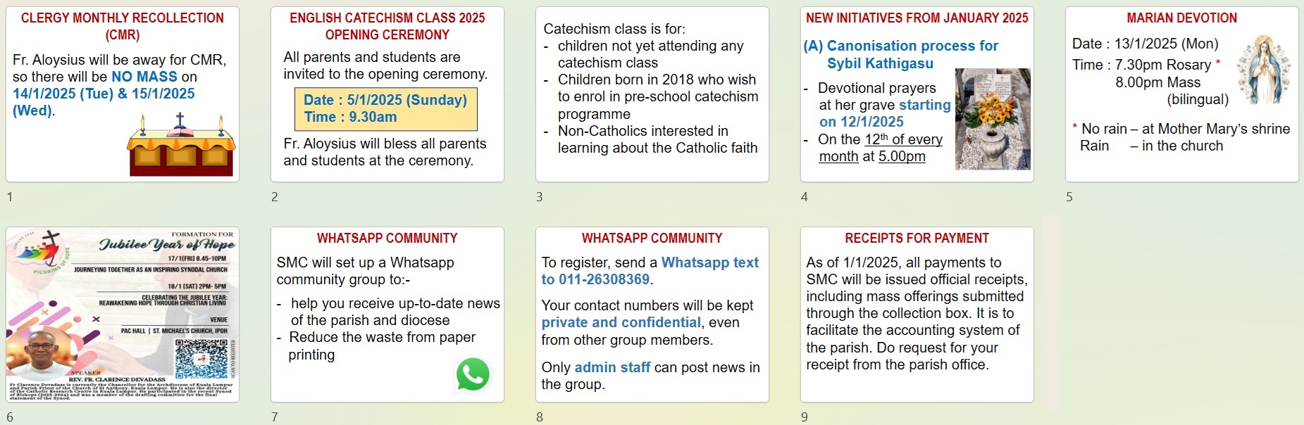 Click on the picture to get further details of the latest notifications (in pdf format) from the Diocese of Penang on 1st January 2025.